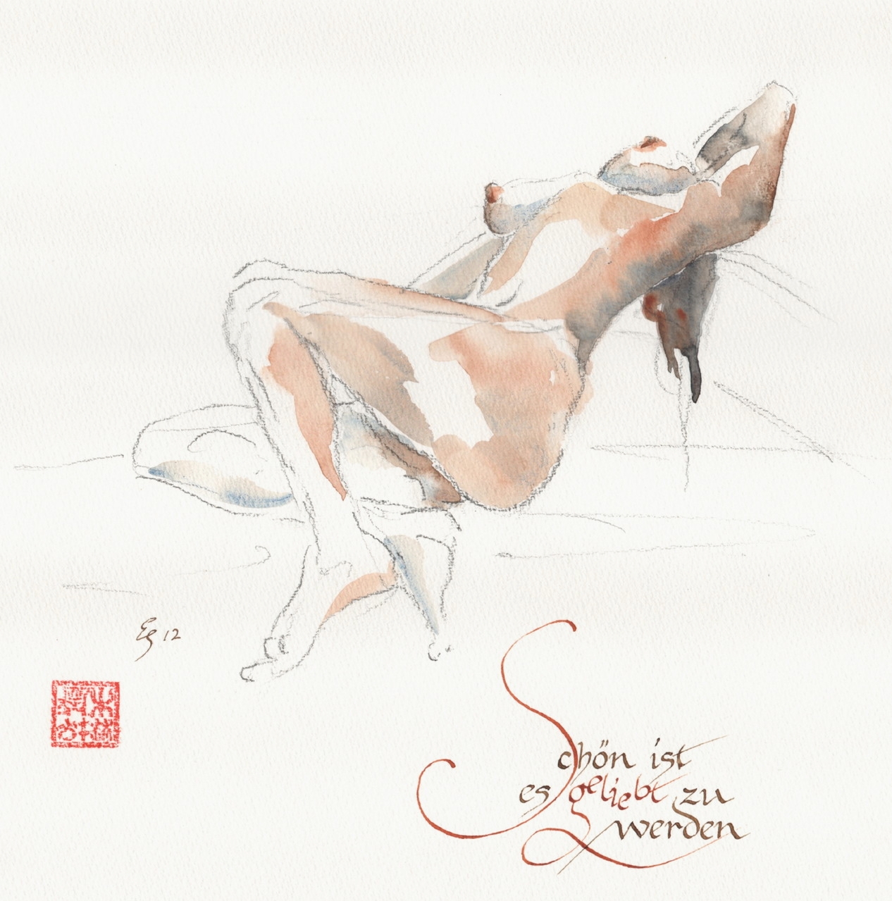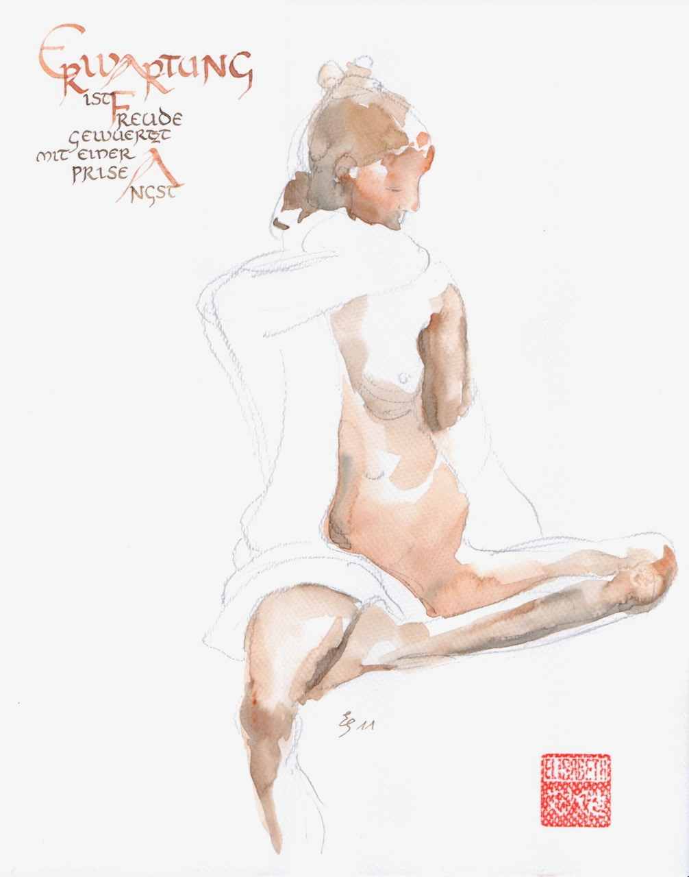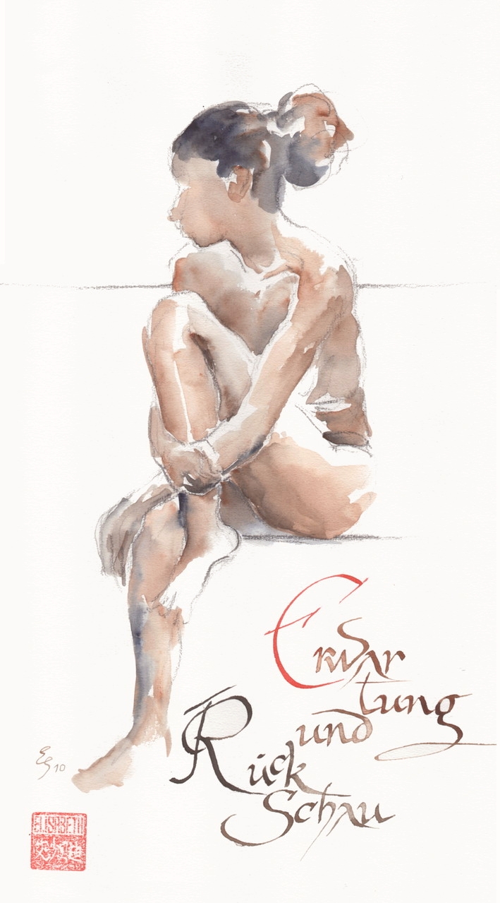 Akt-Aquarellskizzen mit Kalligrafie