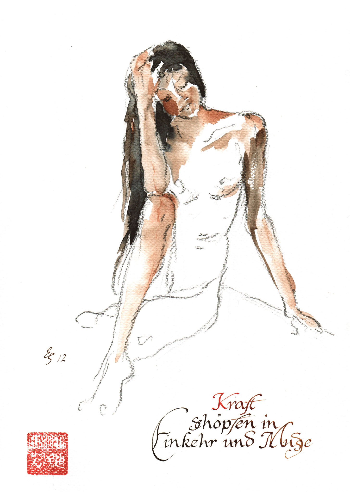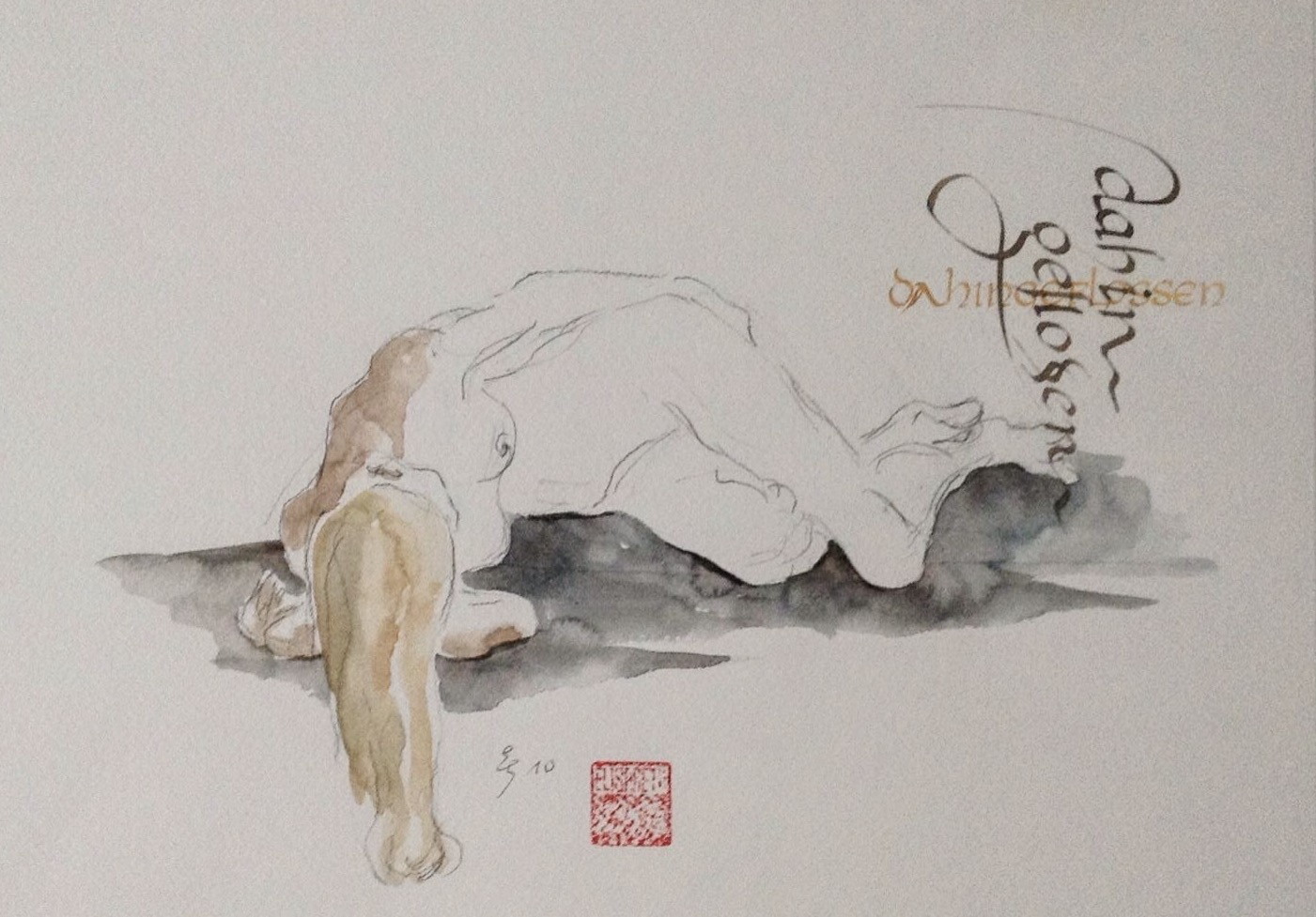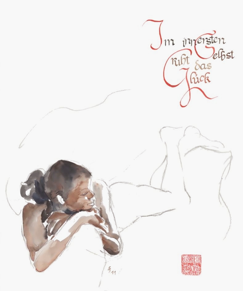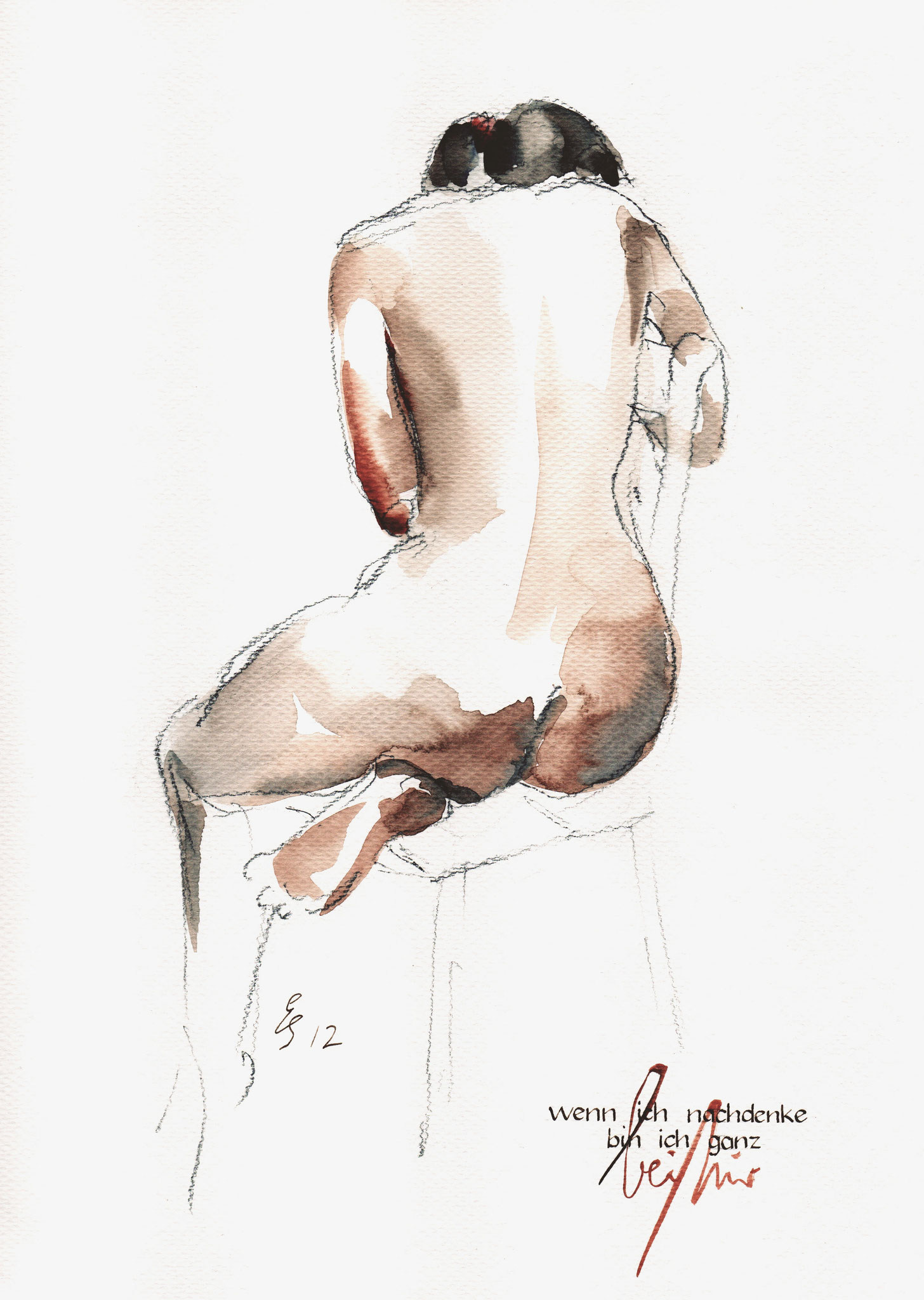 Akt-Aquarellskizzen mit Kalligrafie
